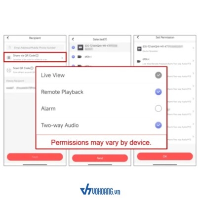 Quyền truy cập: Bạn có thể tùy chỉnh quyền truy cập cho người được chia sẻ, ví dụ: xem trực tiếp, phát lại, điều khiển PTZ.