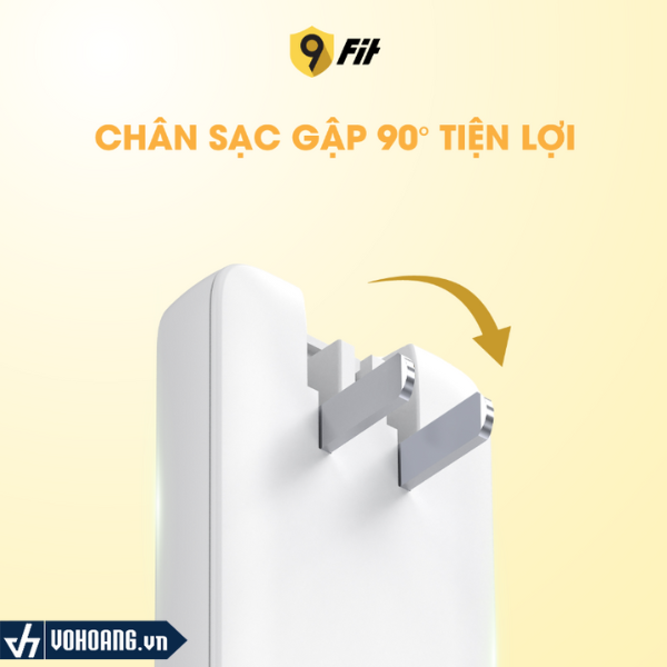 Không chỉ mỏng nhẹ, Sạc 9FIT Slim PD 65W 2C GaN còn được trang bị chân sạc gập, giúp tối ưu không gian sử dụng và hạn chế hư hỏng khi mang theo. Tính năng này đặc biệt hữu ích khi bạn cần sạc thiết bị ở quán cà phê, trên máy bay hay trong những chuyến công tác xa.