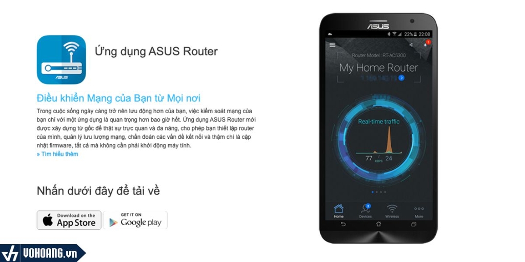 Trong cuộc sống ngày càng trở nên lưu động hơn của bạn, việc kiểm soát mạng của bạn chỉ với một ứng dụng là quan trọng hơn bao giờ hết. Ứng dụng ASUS Router mới được xây dựng từ gốc để thật sự trực quan và đa năng, cho phép bạn thiết lập router của mình, quản lý lưu lượng mạng, chẩn đoán các vấn đề kết nối và thậm chí là cập nhật firmware, tất cả mà không cần phải khởi động máy tính.