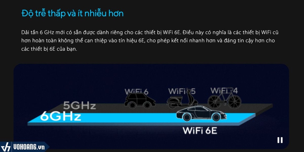 Dải tần 6 GHz mới có sẵn được dành riêng cho các thiết bị WiFi 6E. Điều này có nghĩa là các thiết bị WiFi cũ hơn hoàn toàn không thể can thiệp vào tín hiệu 6E, cho phép kết nối nhanh hơn và đáng tin cậy hơn cho các thiết bị 6E của bạn.