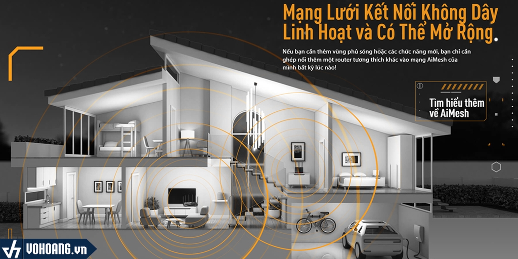 👉 Hỗ trợ ASUS AiMesh - Tạo kết nối lưới mạng cho toàn bộ ngôi nhà một cách lin hoạt, mượt mà với các bộ định tuyến tương thích với AiMesh.