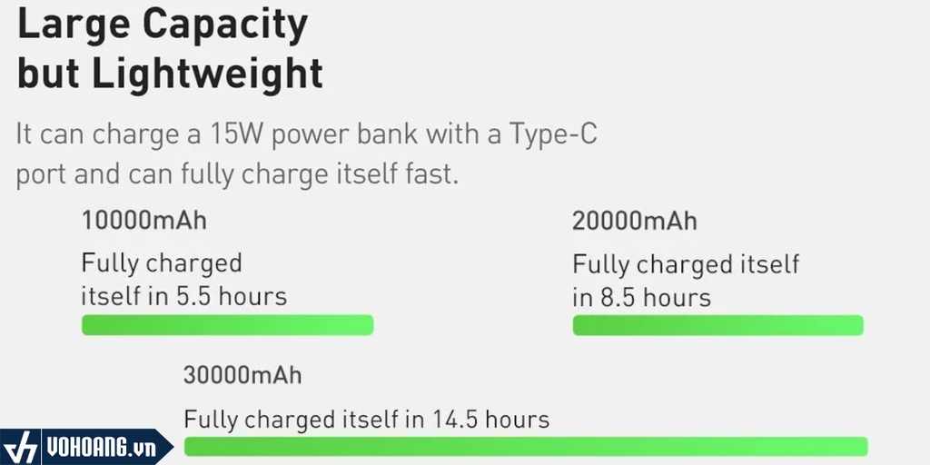 Thời gian sạc đầy nhanh chóng được hãng công bố với từng dung lượng pin khác nhau