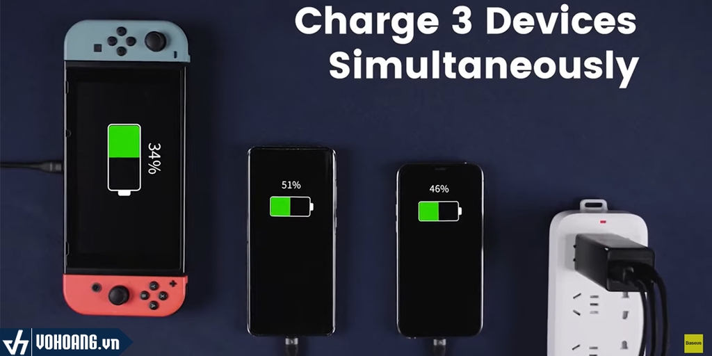 - Bộ sạc nhanh đa năng Baseus GaN3 Pro Quick Charger 65W với công suất sử dụng lên đến 65W hỗ trợ nhiều chuẩn sạc nhanh mới nhất hiện nay cho phép bạn có thể kết nối và sạc pin cho nhiều thiết bị khác nhau cùng lúc như Smartphone, iPhone/ ipad, Macbook / Laptop có hỗ trợ Power delivery...