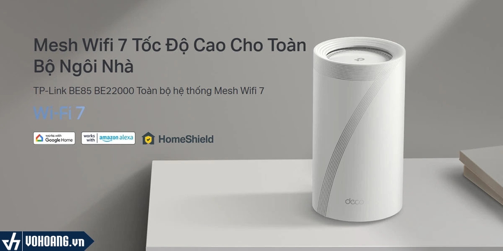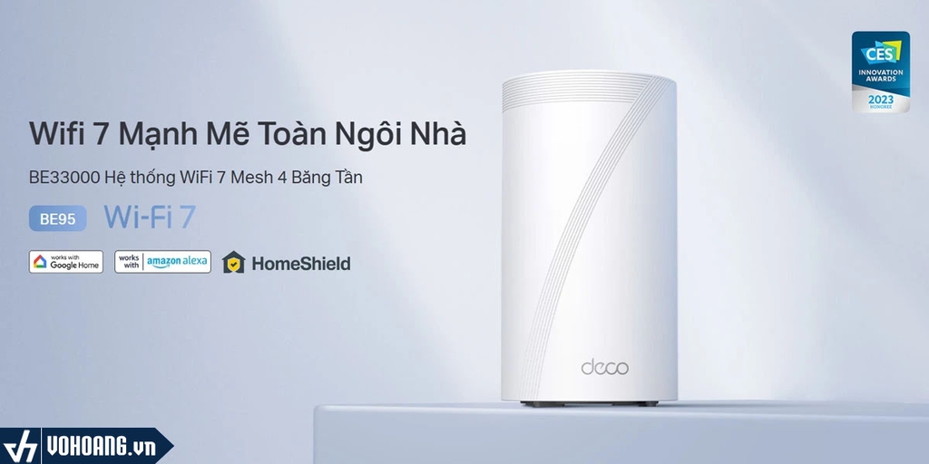 TP-Link Deco BE95, chuẩn BE33000, hỗ trợ 4 băng tần: 11520 Mbps (6 GHz-1), 11520 Mbps (6 GHz-2), 8640 Mbps (5 GHz), 1148 Mbps (2.4 GHz). Có 1 cổng 10 Gbps Ethernet/Fiber Combo WAN/LAN, 1 cổng 10 Gbps WAN/LAN, 2 cổng 2.5 Gbps. Công nghệ 16-Stream, 320 MHz Channels, 4K-QAM, MLO. Tích hợp 4 ăng-ten ngầm, công nghệ AI-Driven Mesh,...