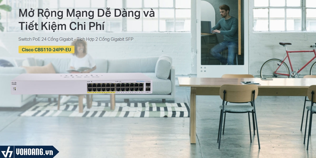 Cisco CBS110-24PP-EU | Switch PoE 24 Cổng Với Công Suất 100W - Tích Hợp 2 Cổng Gigabit SFP
