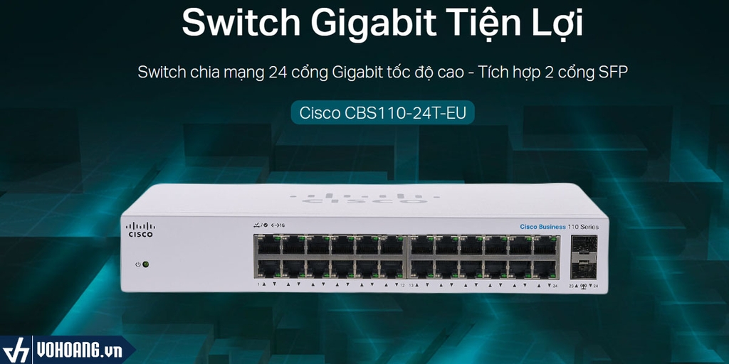 - Switch Cisco CBS110-24T-EU là dòng Switch Unmanaged, cung cấp 24 cổng Gigabit Ethernet và 2 cổng SFP Gigabit giúp kết nối mạng mạnh mẽ theo nhu cầu kinh doanh, tuy nhiên vẫn đảm bảo độ tin cậy với các tính năng nâng cao như chất lượng dịch vụ (QoS), phát hiện vòng lặp và chuẩn đoán cáp. Phù hợp lắp đặt triển khai trong các công ty, văn phòng...