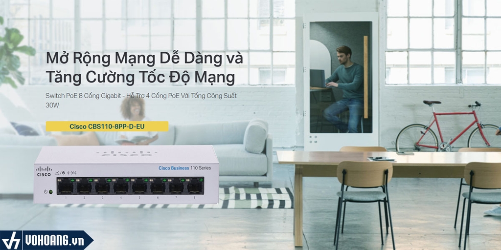 Cisco CBS110-8PP-D-EU | Switch PoE 8 Cổng Gigabit - Hỗ Trợ 4 Cổng PoE - Công Suất 32W