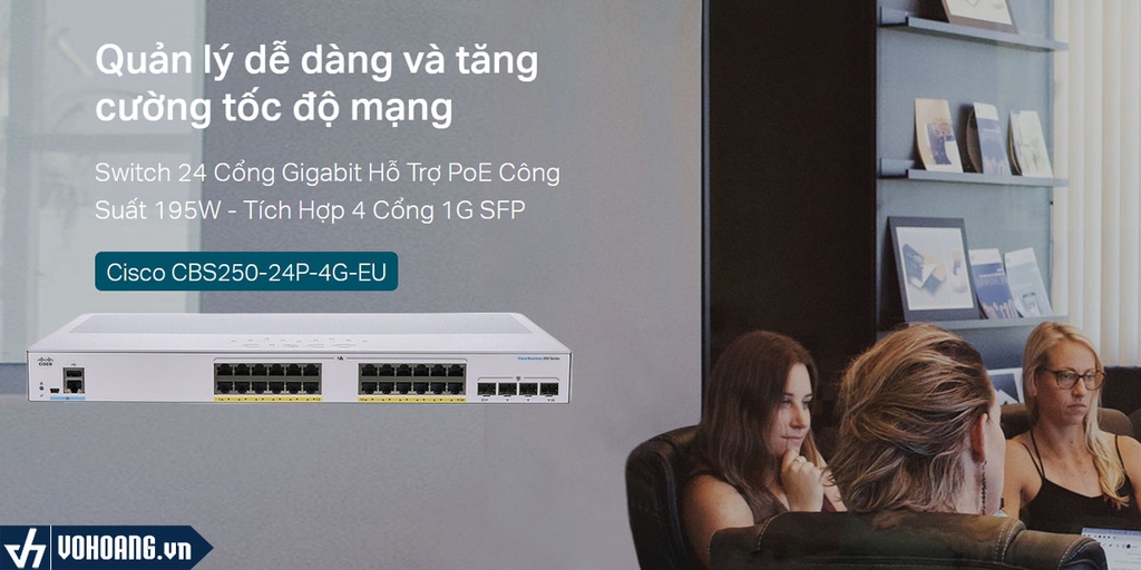 Cisco CBS250-24P-4G-EU | Switch Thông Minh PoE 24 Cổng Gigabit - Tích Hợp 4 Cổng Gigabit SFP