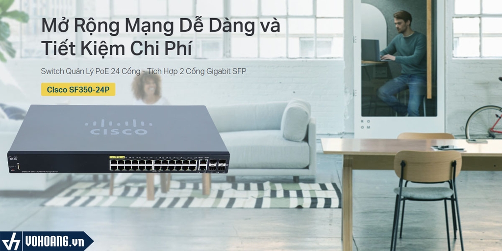Cisco SF350-24P | Switch Quản Lý PoE 24 Cổng Với Công Suất 185W - Tích Hợp 2 Cổng Gigabit SFP