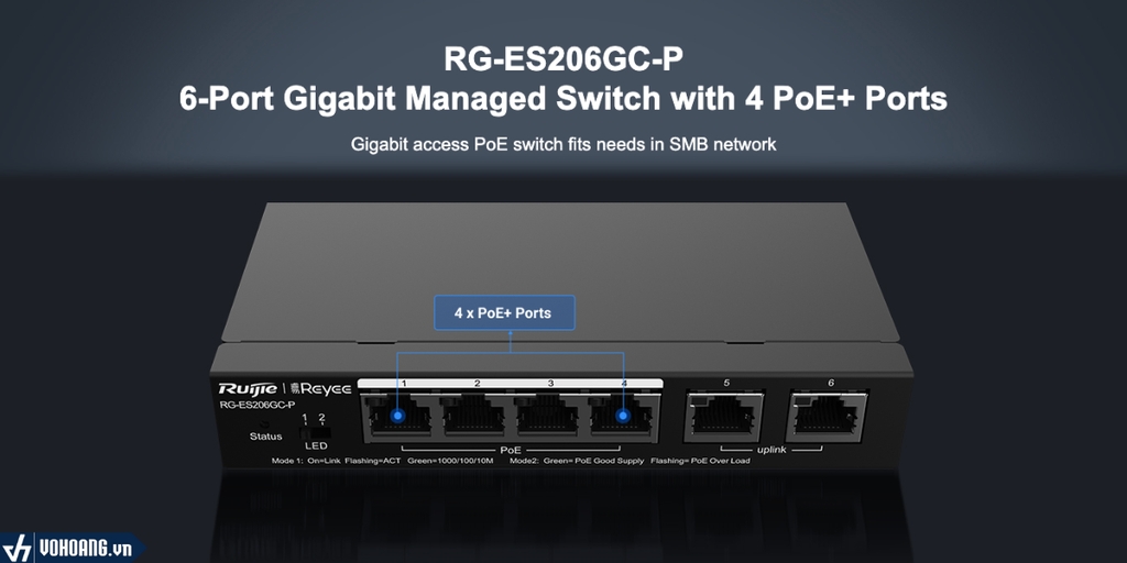 – Layer 2 Smart Managed PoE Switch 6 Cổng 10/100/1000BASE-T công suất 54W