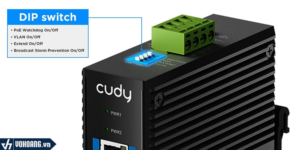 Cudy IF1008P không chỉ ấn tượng với thiết kế bền bỉ theo chuẩn công nghiệp mà còn được trang bị hai tính năng thông minh gồm PoE Watchdog và Storm Control. Các tính năng này được kích hoạt dễ dàng qua công tắc gạt trực tiếp, vừa đơn giản vừa hiệu quả, giúp nâng cao độ ổn định và tăng cường khả năng phục hồi nhanh cho hạ tầng mạng trong môi trường công nghiệp khắc nghiệt.