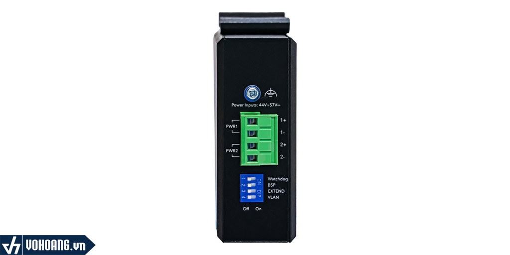 Extend Mode cho phép truyền dữ liệu và cấp nguồn ở khoảng cách lên tới 250 mét, vượt xa giới hạn tiêu chuẩn. Nó giúp giải quyết bài toán khi triển khai camera giám sát hoặc cảm biến ở khoảng cách xa. Chế độ VLAN mode giúp cách ly các cổng mạng chỉ bằng công tắc gạt trực tiếp, tăng cường bảo mật và ngăn chặn sự cố lan truyền trong hệ thống công nghiệp.