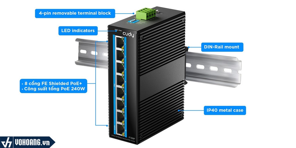 Thông số nổi bật của switch PoE Cudy IF1008P
