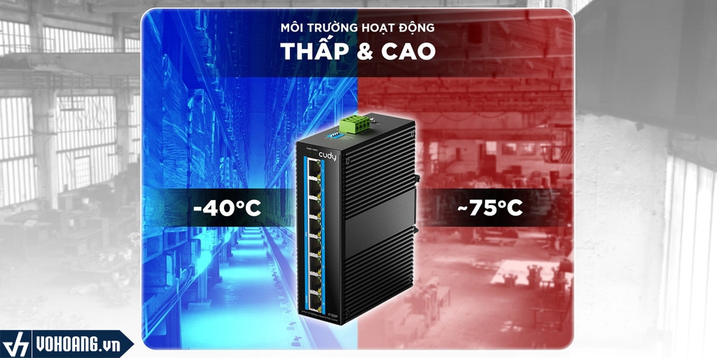 Cudy IF1008P thuộc dòng switch công nghiệp được thiết kế chuyên biệt để đáp ứng các yêu cầu khắt khe trong môi trường sản xuất, năng lượng, giao thông hay hàng hải. Với lớp vỏ nhôm chuẩn IP40, khả năng chịu nhiệt độ từ -40°C đến 75°C và nguồn DC kép dự phòng, thiết bị đảm bảo hoạt động ổn định, liên tục trong mọi điều kiện khắc nghiệt.