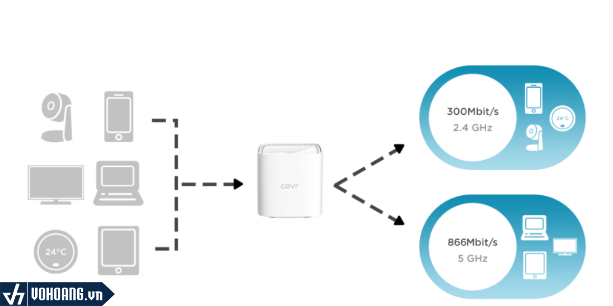 Với Wi-Fi băng tần kép AC1200 tốc độ cao và 11ac Wave 2 với MU-MIMO, COVR-1100 đủ nhanh để hỗ trợ nhiều thiết bị thực hiện các tác vụ dữ liệu chuyên sâu hàng ngày như phát trực tuyến HD và trò chuyện video cùng lúc. Hoàn hảo, nếu bạn mới bắt đầu xây dựng mạng gia đình.