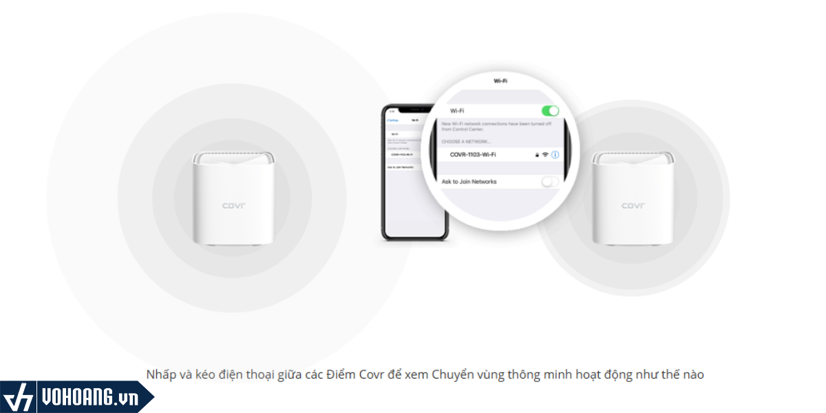 Hệ thống Wi-Fi Mesh băng tần kép COVR được ghép nối sẵn và hoạt động ngay khi mở hộp, vì vậy bạn chỉ cần cắm Điểm COVR vào và bắt đầu. Có thể thêm các note COVR-1100 để mở rộng thêm vùng phủ sóng.