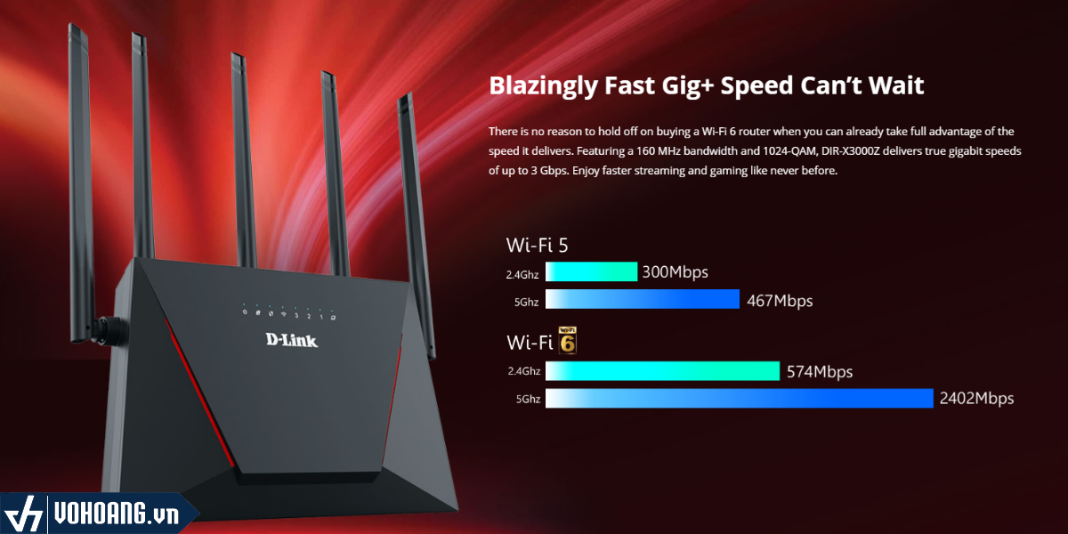 tốc độ mà nó mang lại. Với băng thông 160 MHz và 1024-QAM, DIR-X3000Z cung cấp tốc độ gigabit thực sự