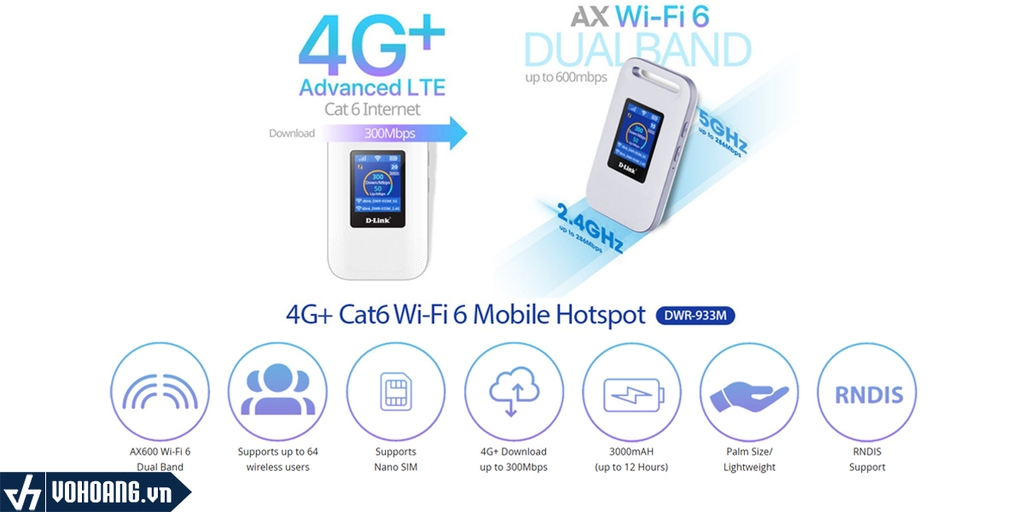Bộ định tuyến di động DWR-933M CAT6 4G/LTE là thiết bị phát sóng di động không dây băng thông rộng tốc độ cao, chuyển đổi từ mạng WAN (WWAN) sang Wi-Fi. DWR-933M sử dụng kết nối Internet 4G để mang đến cho bạn mạng Wi-Fi dễ dàng triển khai ở bất kỳ đâu bạn cần. Thay vì giới hạn kết nối Internet di động của bạn với một thiết bị duy nhất thông qua một đầu thu USB, DWR-933M cho phép bạn tạo một điểm phát sóng Wi-Fi để chia sẻ kết nối. Kích thước tiện lợi cho phép bạn chia sẻ kết nối ở bất kỳ đâu; sử dụng nó trong quán cà phê để gửi email trong khi bạn bè đọc tin tức, hoặc tại sân bay để bạn và đồng nghiệp có thể làm việc trong khi chờ máy bay.