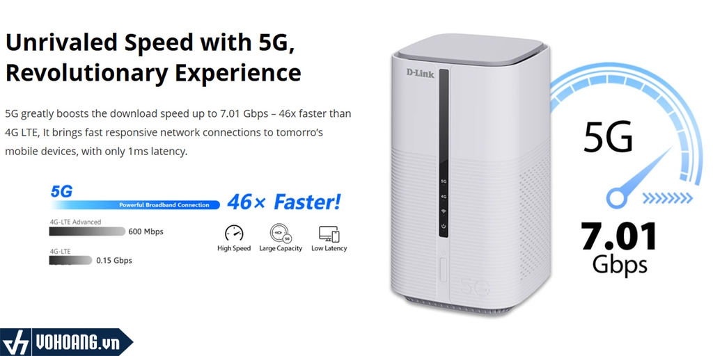 5G tăng đáng kể tốc độ tải xuống lên tới 7,01 Gbps – nhanh hơn 46 lần so với 4G LTE, mang lại kết nối mạng phản hồi nhanh cho các thiết bị di động ngày nay, với độ trễ chỉ 1ms.