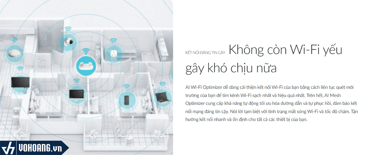 AI Wi-Fi Optimizer dễ dàng cải thiện kết nối Wi-Fi của bạn bằng cách liên tục quét môi trường của bạn để tìm kênh Wi-Fi sạch nhất và hiệu quả nhất. Trên hết, AI Mesh Optimizer cung cấp khả năng tự động tối ưu hóa đường dẫn và tự phục hồi, đảm bảo kết nối mạng đáng tin cậy. Nói lời tạm biệt với tình trạng mất sóng Wi-Fi và tốc độ chậm. Tận hưởng kết nối nhanh và ổn định cho tất cả các thiết bị của bạn.