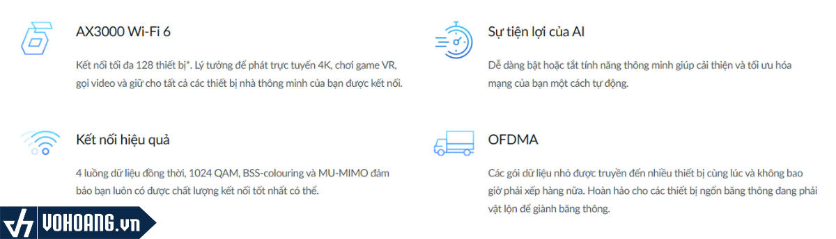 Kết nối tối đa 128 thiết bị*. Lý tưởng để phát trực tuyến 4K, chơi game VR, gọi video và giữ cho tất cả các thiết bị nhà thông minh của bạn được kết nối.