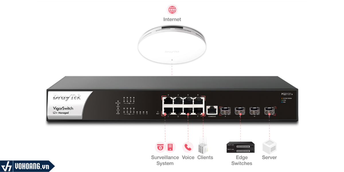 VigorSwitch PQ2121x không chỉ đáp ứng tốt nhu cầu về nguồn cấp PoE mà còn mang lại sự tiện lợi và linh hoạt trong việc quản lý hệ thống camera và các thiết bị IoT, trở thành lựa chọn tối ưu cho các doanh nghiệp cần một giải pháp mạng toàn diện và hiện đại.