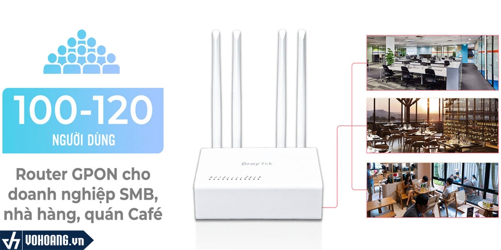 Vigor 1100ax là mẫu GPON router Wi-Fi 6 hướng đến doanh nghiệp SMB, nhà hàng, quán café với khả năng chịu tải từ 100 - 120 người dùng. Sản phẩm trang bị đầy đủ tính năng của router phân khúc SMB như VPN đa giao thức, Firewall (Tường lửa), WiFi Marketing và đặc biệt chuẩn Wi-Fi 6 mang lại tốc độ nhanh hơn cùng cơ chế bảo mật tăng cường.