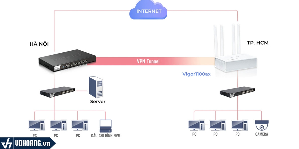 Vigor1100ax được trang bị 2 kênh VPN (IPsec, OpenVPN, WireGuard) mang lại sự tiện lợi và bảo mật cho người dùng khi truy cập từ xa hoặc kết nối đến dữ liệu trung tâm. Tính năng này tăng cường hiệu suất làm việc và bảo vệ dữ liệu của doanh nghiệp.