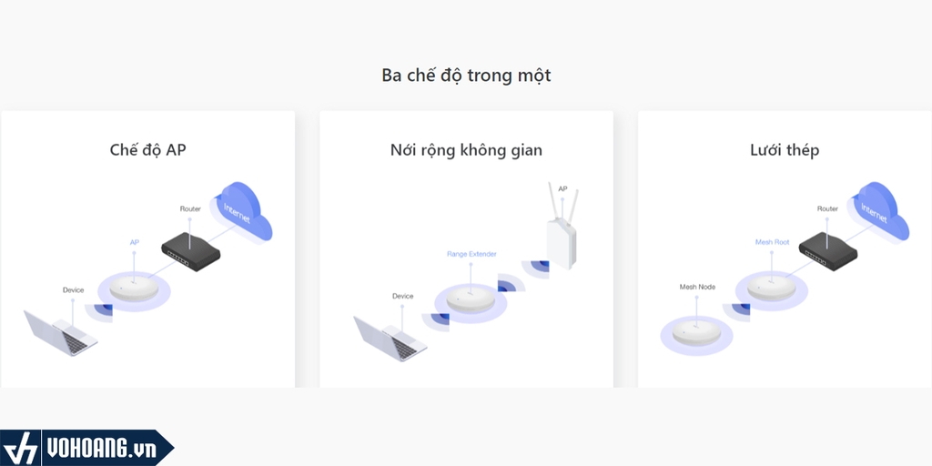 - MESH: Dễ dàng kết nối với các AP khác tạo thành hệ thống mạng lưới mở rộng