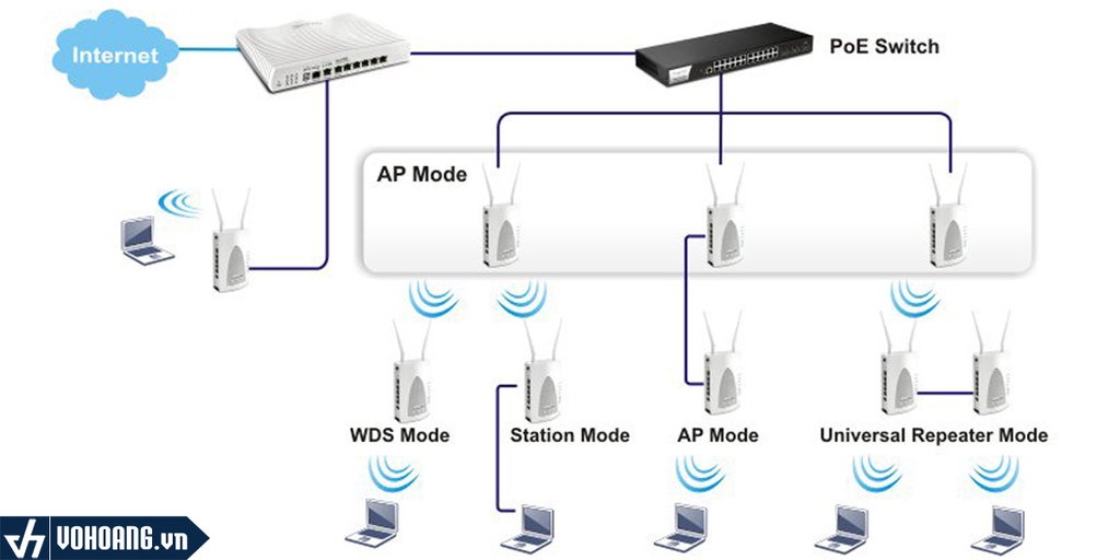 Access Point chịu tải không còn quá xa lạ đối với người sử dụng, tuy nhiên đặc điểm chung thường thấy ở những thiết bị này thường thấy là chỉ sử dụng cấp nguồn PoE, được trang bị 1-2 cổng RJ45 sẽ khiến bạn gặp khó khăn trong việc chia sẽ mạng đến các thiết bị khác khi hệ thống chỉ có một line mạng và sẽ phải phát sinh sử dụng đến Switch chia mạng khi đó bộ cấp nguồn PoE bắt buộc phải đặt gần thiết bị gây ra vấn đề phát sinh chi phí và Switch cũng như mạng lưới điện để cấp nguồn cho Poe và Switch. Nắm bắt được vấn đề đó Draytek đã cho ra mắt VigorAP903, sản phẩm sẽ giúp bạn cực kỳ linh hoạt trong việc triển khai hệ thống mạng.