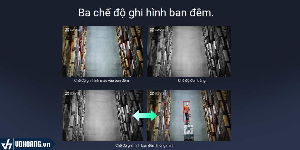 Khi không cần chiếu thêm đèn, bạn chỉ cần chuyển camera sang chế độ ghi hình ban đêm đen trắng qua Ứng dụng EZVIZ để tắt đèn soi sáng. Tuyệt hơn nữa, bạn có thể chọn chế độ ghi hình ban đêm thông minh. Ở chế độ này, C3N sẽ tự động chuyển từ chế độ giám sát đen trắng sang giám sát màu và bật đèn rọi khi phát hiện chuyển động của người. Video cảnh báo sẽ được ghi hình màu để bạn có thể quan sát toàn bộ chi tiết quan trọng.