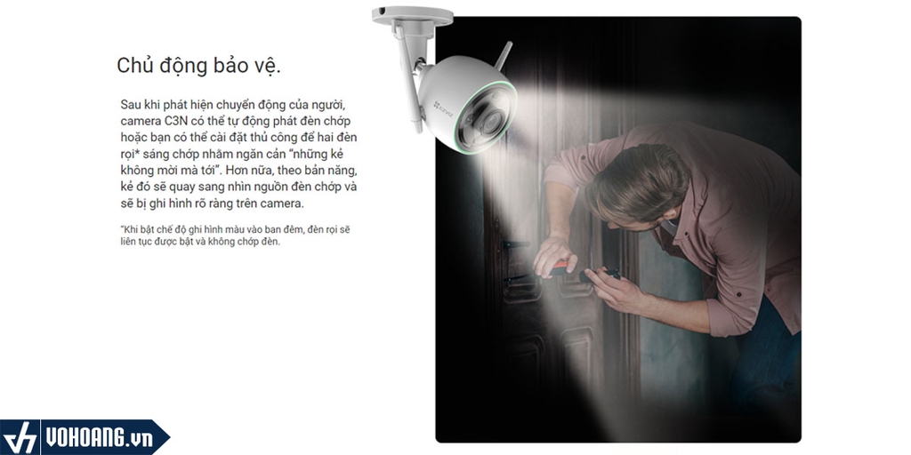 Sau khi phát hiện chuyển động của người, camera C3N có thể tự động phát đèn chớp hoặc bạn có thể cài đặt thủ công để hai đèn rọi* sáng chớp nhằm ngăn cản “những kẻ không mời mà tới”. Hơn nữa, theo bản năng, kẻ đó sẽ quay sang nhìn nguồn đèn chớp và sẽ bị ghi hình rõ ràng trên camera.