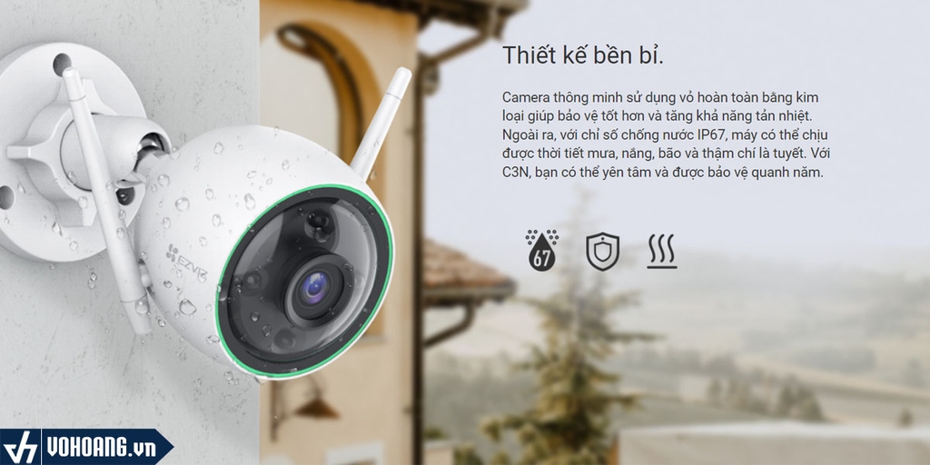 Camera thông minh sử dụng vỏ hoàn toàn bằng kim loại giúp bảo vệ tốt hơn và tăng khả năng tản nhiệt. Ngoài ra, với chỉ số chống nước IP67, máy có thể chịu được thời tiết mưa, nắng, bão và thậm chí là tuyết. Với C3N, bạn có thể yên tâm và được bảo vệ quanh năm