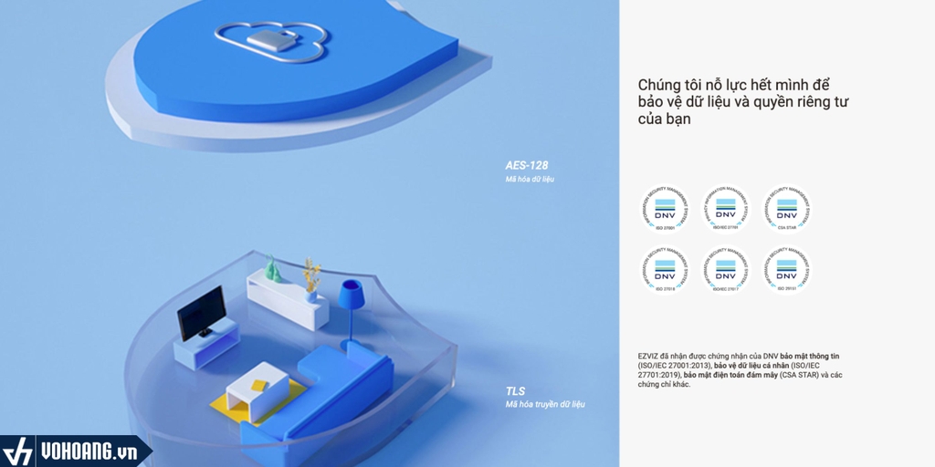 EZVIZ đã nhận được chứng nhận của DNV bảo mật thông tin (ISO/IEC 27001:2013), bảo vệ dữ liệu cá nhân (ISO/IEC 27701:2019), bảo mật điện toán đám mây (CSA STAR) và các chứng chỉ khác.