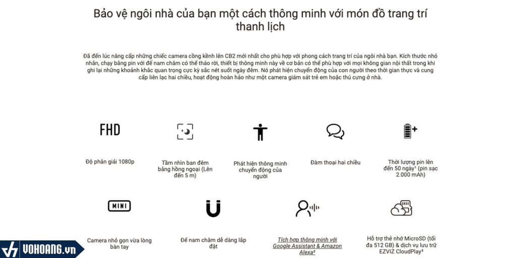 EZVIZ CB2 là một sản phẩm camera an ninh độc đáo được thiết kế để giám sát và bảo vệ căn nhà của bạn một cách hiệu quả. Với chất lượng hình ảnh sắc nét và độ phân giải cao, CB2 cho phép bạn theo dõi các hoạt động xảy ra trong và ngoài ngôi nhà của mình mọi lúc, mọi nơi thông qua ứng dụng di động.