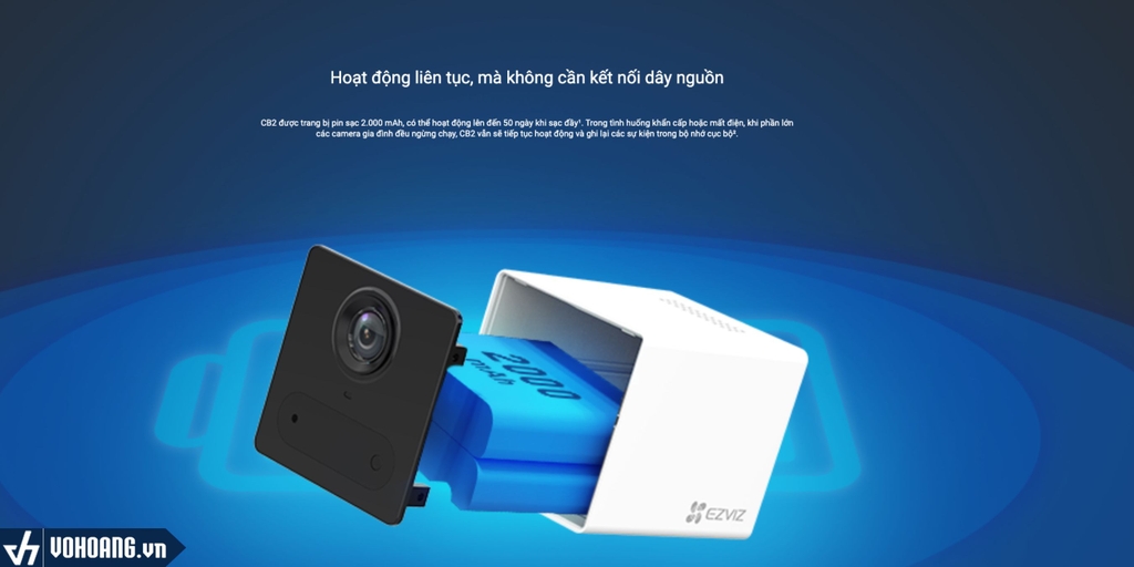 CB2 được trang bị pin sạc 2.000 mAh, có thể hoạt động lên đến 50 ngày khi sạc đầy¹. Trong tình huống khẩn cấp hoặc mất điện, khi phần lớn các camera gia đình đều ngừng chạy, CB2 vẫn sẽ tiếp tục hoạt động và ghi lại các sự kiện trong bộ nhớ cục bộ.