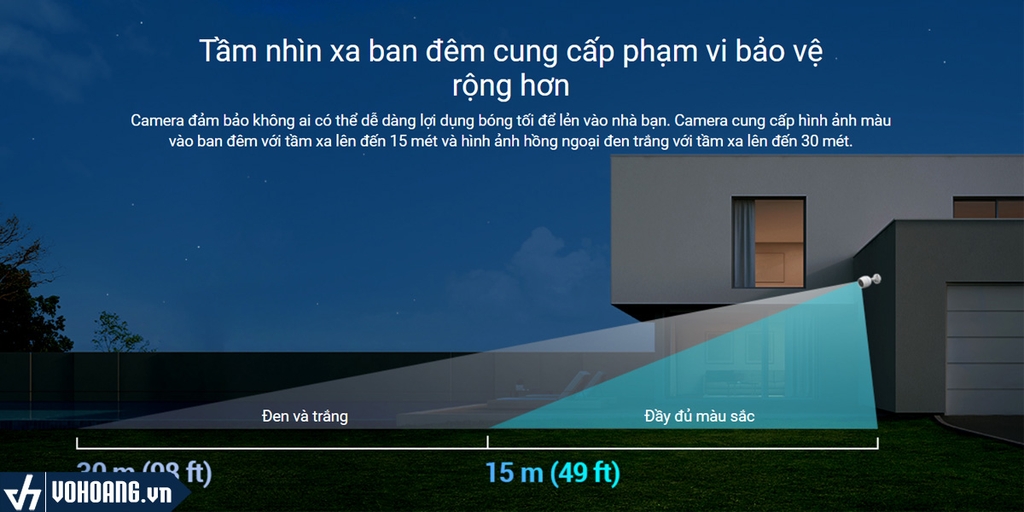 Ezviz CB3 cung cấp tầm nhìn ban đêm lên đến 15 mét. Đặt CB3 trong chế độ tầm nhìn ban đêm thông mình thì thiết bị sẽ tự động chuyển từ hình ảnh đen trắng sang hình ảnh đầy đủ màu sắc khi phát hiện các đối tượng chuyển động