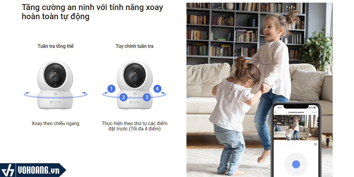 Camera H6C Pro 2K+ được thiết kế với khả năng quay quét tự động, giúp loại bỏ điểm mù hiệu quả. Người dùng còn có thể cá nhân hóa chế độ tuần tra, đảm bảo quan sát toàn diện mọi góc nhìn trong ngôi nhà của mình.