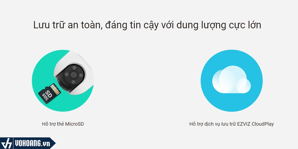Bạn có thể bảo mật các video đã quay của mình trên thẻ nhớ microSD cục bộ lên đến 512 GB hoặc đăng ký EZVIZ CloudPlay để có bộ nhớ đám mây được mã hóa hoàn toàn.