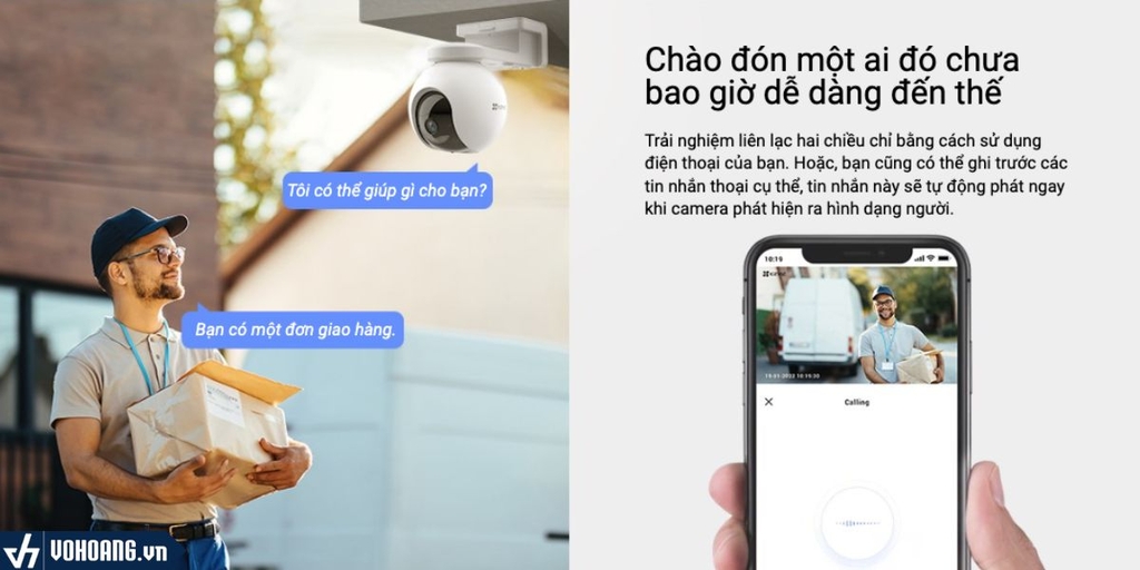 Trải nghiệm liên lạc hai chiều chỉ bằng cách sử dụng điện thoại của bạn. Hoặc, bạn cũng có thể ghi trước các tin nhắn thoại cụ thể, tin nhắn này sẽ tự động phát ngay khi camera phát hiện ra hình dạng người.