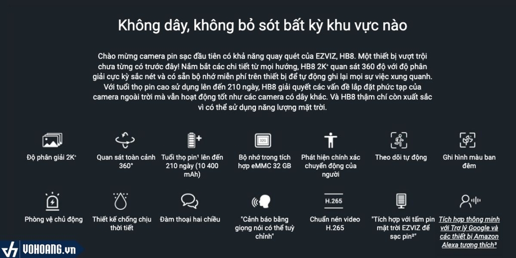 HB8 2K⁺ là camera sở hữu dung lượng pin lớn nhất trong số các camera an ninh quay quét trên thị trường. Trong khi các camera khác có điểm giới hạn như phải phụ thuộc vị trí của ổ cắm hay chiều dài của cáp kết nối, HB8 không dây cung cấp khả năng không giới hạn. Chỉ cần đặt HB8 ở nơi bạn muốn, nơi bạn thấy được những góc nhìn toàn diện nhất.