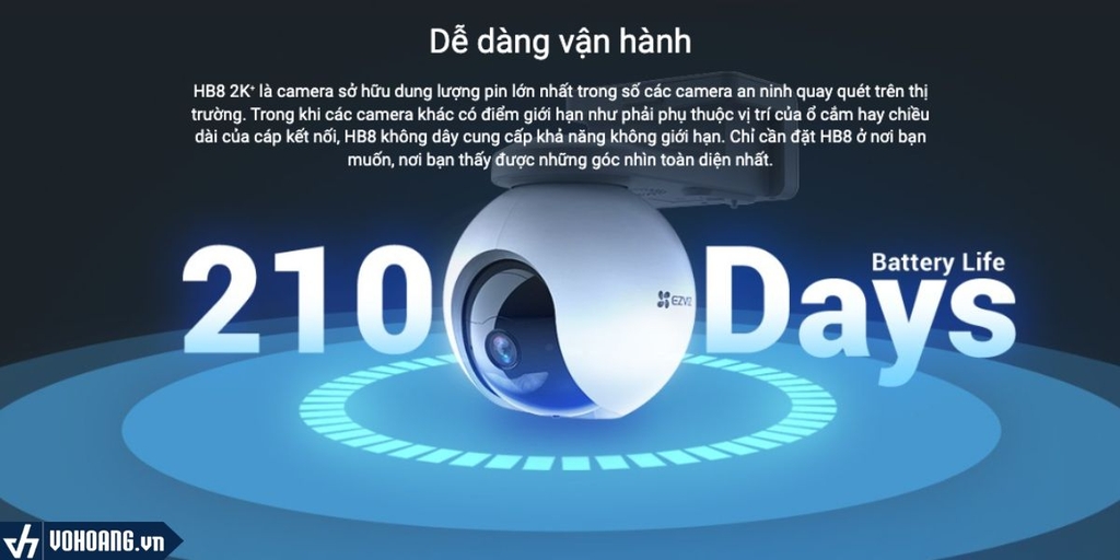 Với tuổi thọ pin cao sử dụng lên đến 210 ngày, HB8 giải quyết các vấn đề lắp đặt phức tạp của camera ngoài trời mà vẫn hoạt động tốt như các camera có dây khác. Và HB8 thậm chí còn xuất sắc vì có thể sử dụng năng lượng mặt trời.