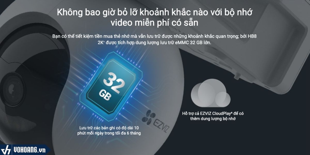 Bạn có thể tiết kiệm tiền mua thẻ nhớ mà vẫn lưu trữ được những khoảnh khắc quan trọng; bởi HB8 2K⁺ được tích hợp dung lượng lưu trữ eMMC 32 GB lớn.
