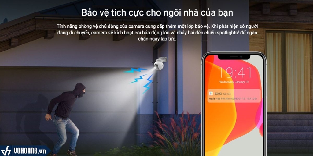 Tính năng phòng vệ chủ động của camera cung cấp thêm một lớp bảo vệ. Khi phát hiện có người đang di chuyển, camera sẽ kích hoạt còi báo động lớn và nháy hai đèn chiếu spotlights⁵ để ngăn chặn ngay lập tức.