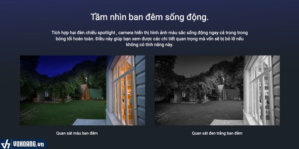Tích hợp hai đèn chiếu spotlight , camera hiển thị hình ảnh màu sắc sống động ngay cả trong trong bóng tối hoàn toàn. Điều này giúp bạn xem được các chi tiết quan trọng mà vốn sẽ bị bỏ lỡ nếu không có tính năng này.