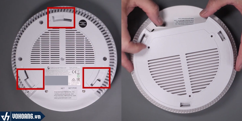 Lắp đặt dễ dàng với bộ đế ốp trần ( đóng hộp có bao gồm ). Trên thân thiết bị có 3 lỗ khóa với chân đế, bạn chỉ gần bắt gắn chắc chắn bộ đế lên tường/ trần sau sau đó dễ dàng ốp thiết bị với thao tắc xoay thuận theo chiều kim đồng hồ
