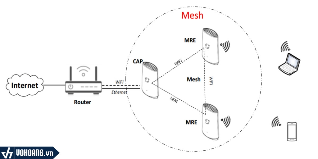 Mesh là một công nghệ rất tiện lợi, khi 1 GWN7660 trong hệ thống mạng bị ngắt kết nối internet vì lỗi cổng LAN cấp mạng hoặc đứt cáp thì tính năng Mesh sẽ giúp thiết bị GWN7660 nhận mạng vô tuyến chuyển tiếp từ thiết bị khác gần nhất trong vòng 2-3 phút để có thể hoạt động một cách bình thường ( tuy nhiên tín hiệu sẽ không ổn định bằng khi sử dụng mạng dây ).
