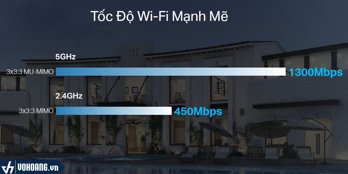 Grandstream GWN7610 mang lại kết nối không dây ổn định với tốc độ nhanh chóng, đạt 450Mbps trên băng tần 2.4Ghz và 1300Mbps trên băng tần 5Ghz. Công nghệ 3x3 MU-MIMO giúp thiết bị này đảm bảo trải nghiệm xem video, làm việc và chơi game mượt mà không gián đoạn.
