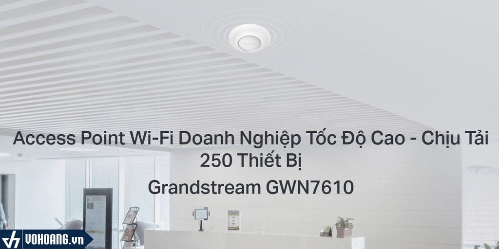 Grandstream GWN7610 với tốc độ lên đến 1.75Gbps, cung cấp kết nối không chỉ mạnh mẽ mà còn cực kỳ hiệu quả. Thiết bị này có thể hỗ trợ đồng thời tới 250 thiết bị, là giải pháp lý tưởng để đảm bảo kết nối internet nhanh chóng, bền vững và ổn định cho hệ thống mạng của bạn.