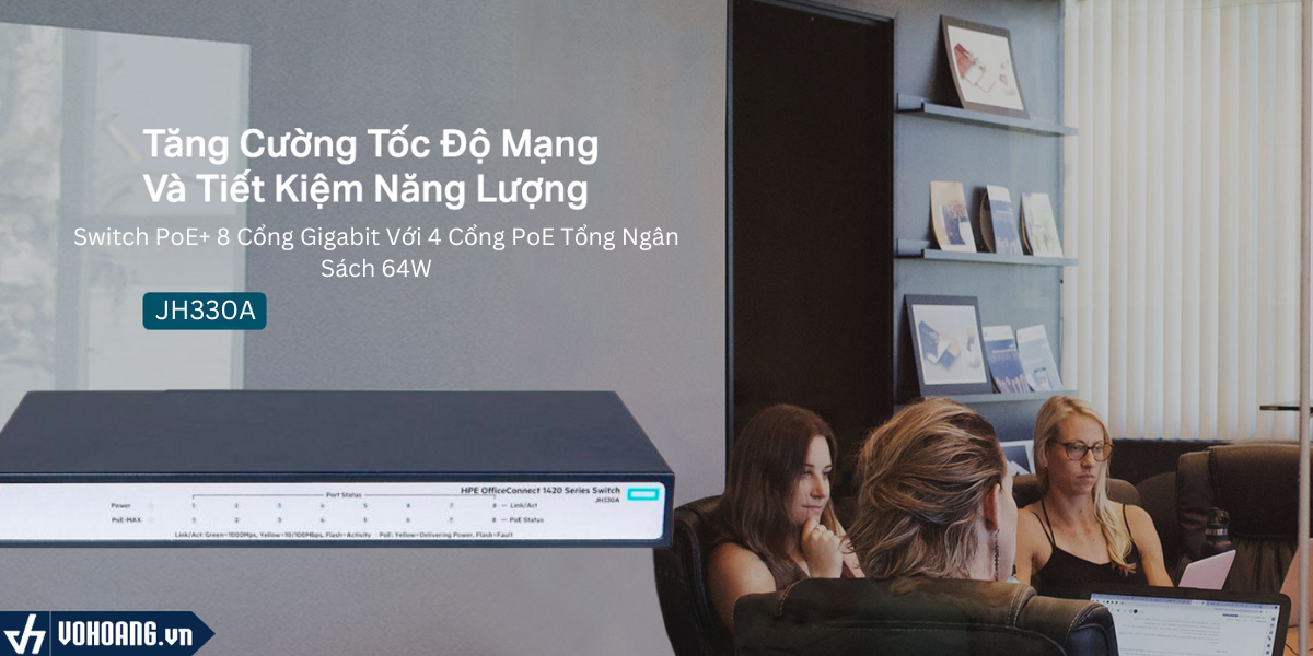 Về tính năng, toàn bộ 8 cổng LAN của OfficeConnect 1420 8G đều hỗ trợ tính năng PoE với tổng công suất là 64W, sẵn sàng hỗ trợ cấp nguồn cho các thiết bị chuyên dụng cần cấp nguồn thông qua kết nối LAN.
